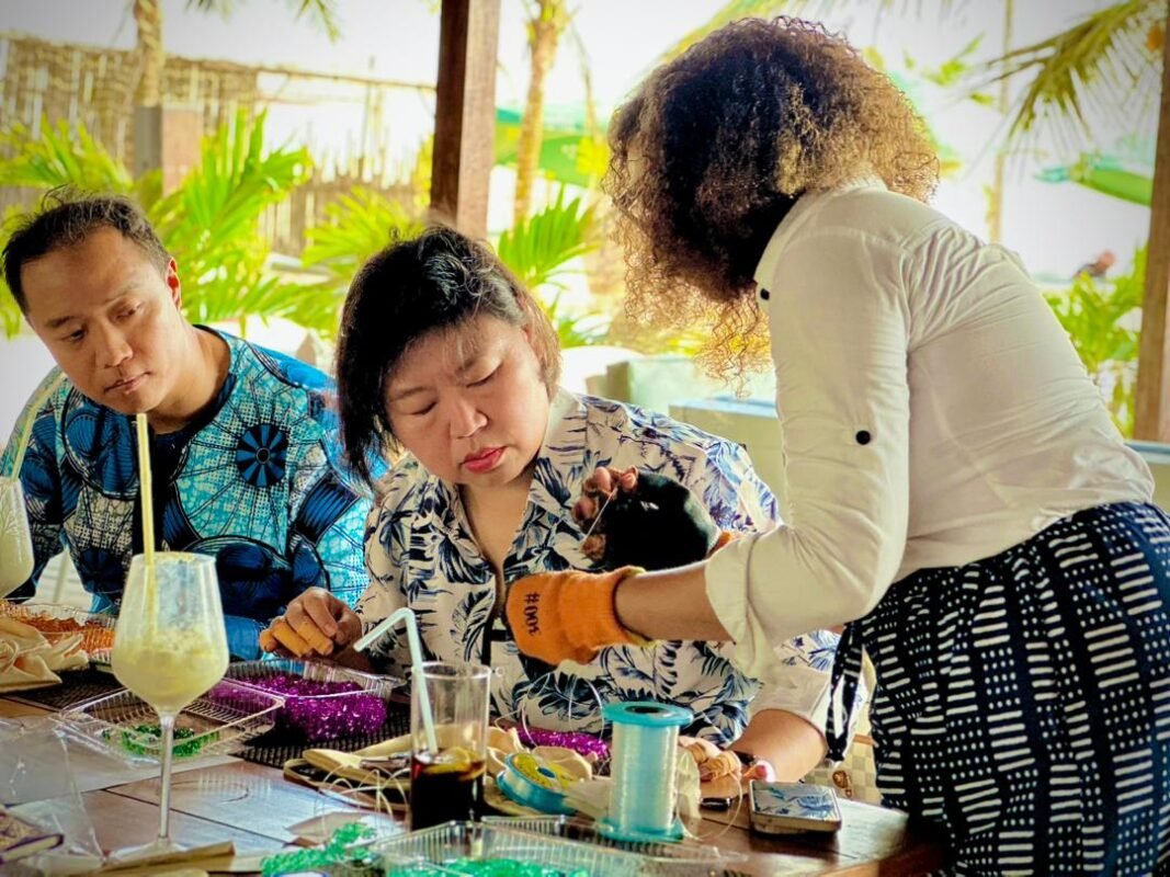 Encadré par les formatrices MOUKIAMA Claude Rebeca et AUPONGOUT Patricia Emmanuelle, l’atelier s’est déroulé dans une ambiance à la fois studieuse et conviviale. Pas à pas, chacune a appris à assembler les perles, à maîtriser les gestes essentiels et à donner forme à ses premières créations.